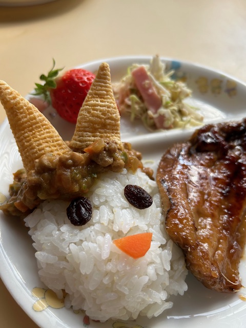 今日は節分の集いで、今年も青鬼さんが来てくれました。