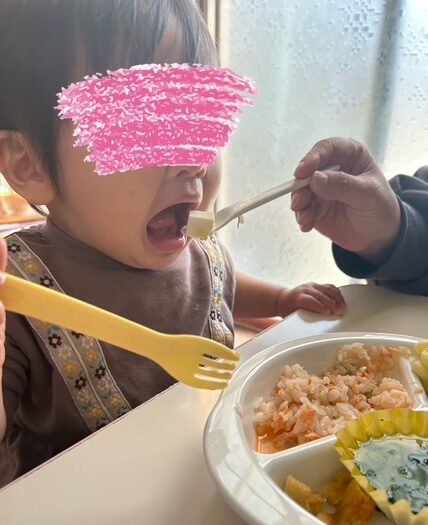 ちびちゃんクラスの大好きな鮭ピラフ<゜)))彡